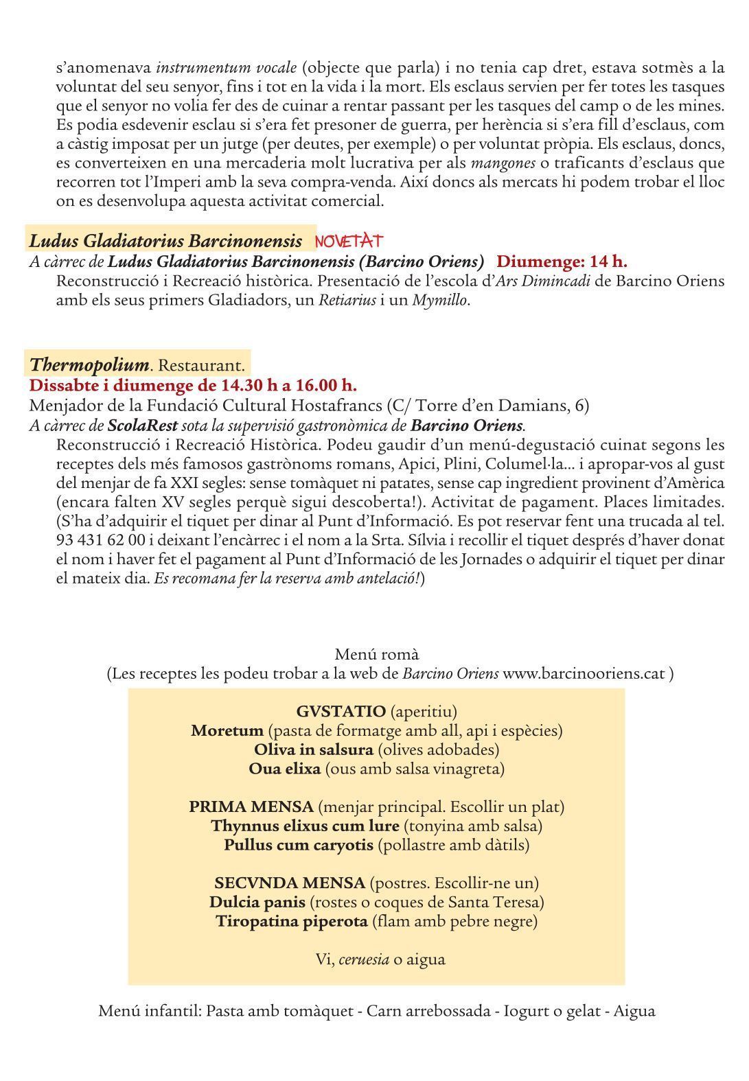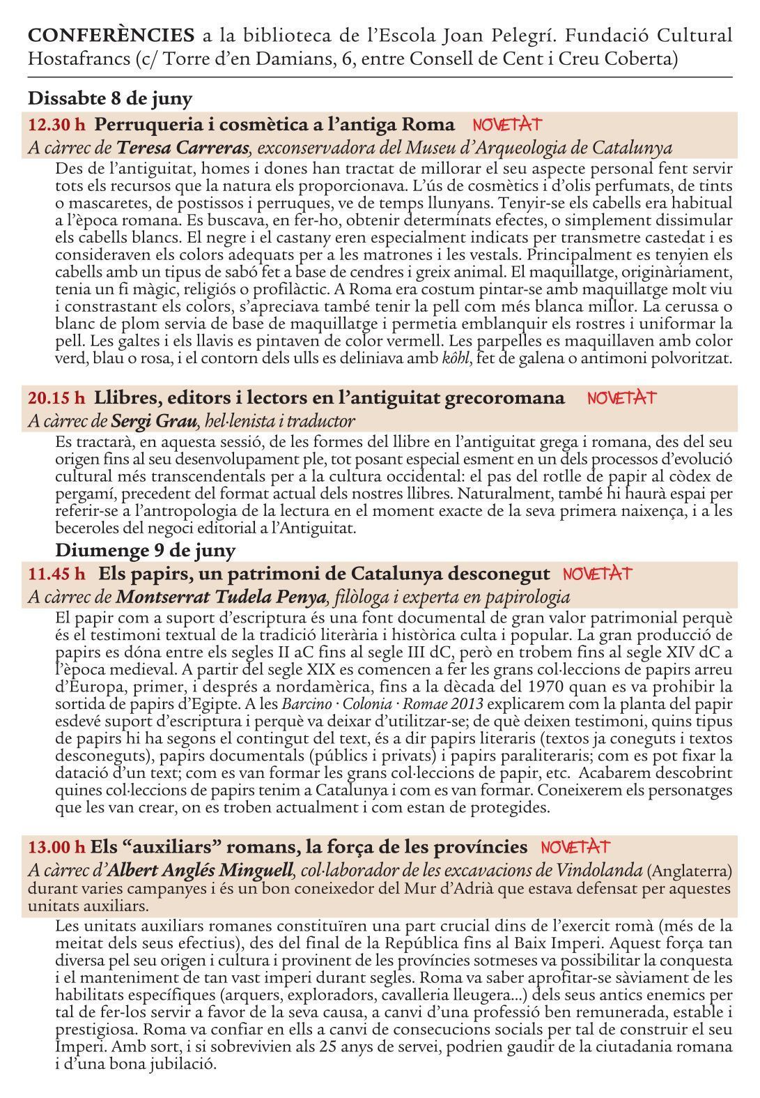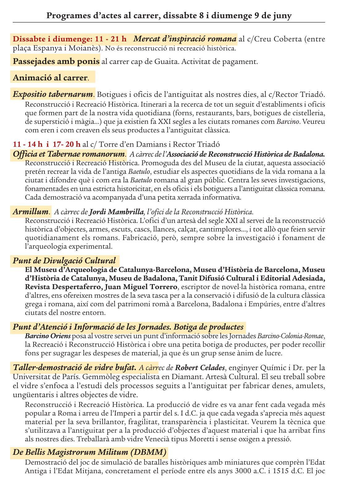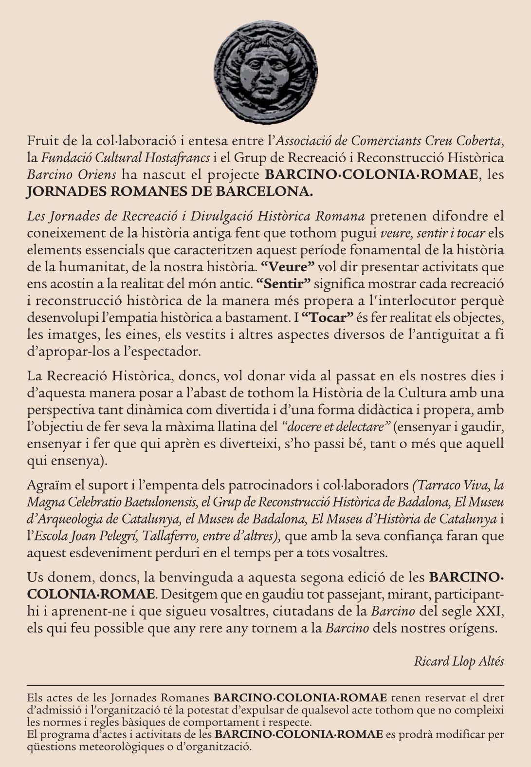 Os dejamos en esta entrada el programa de Barcino·Colonia·Romae que tendrá lugar entre el 8 y 9 de junio en la Creu Coberta de Barcelona.