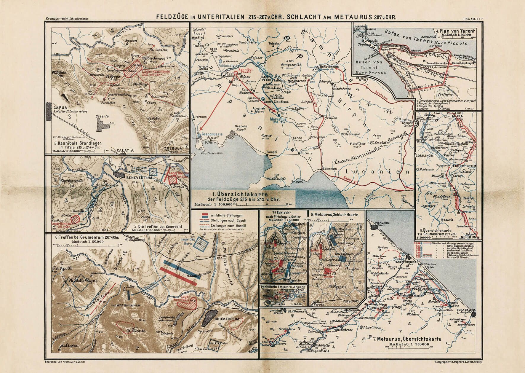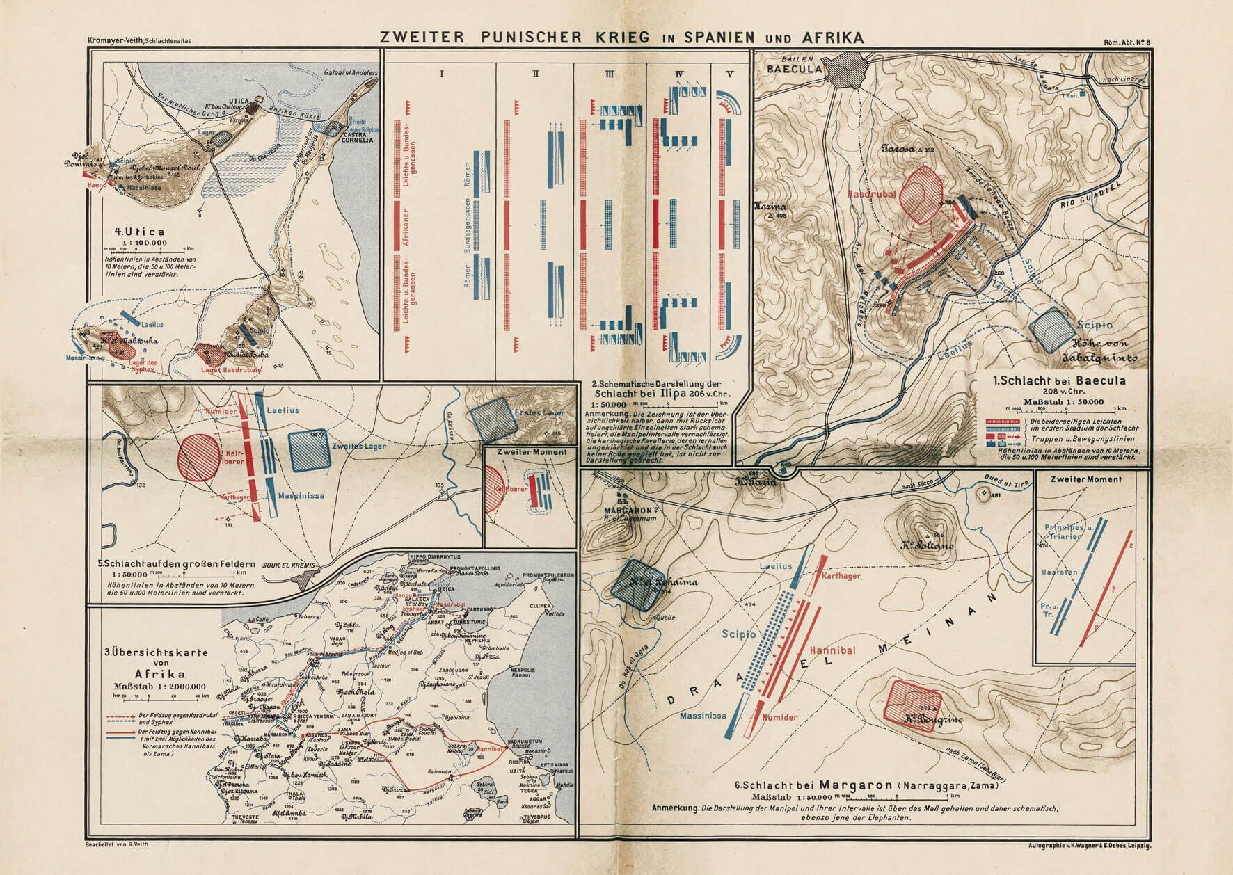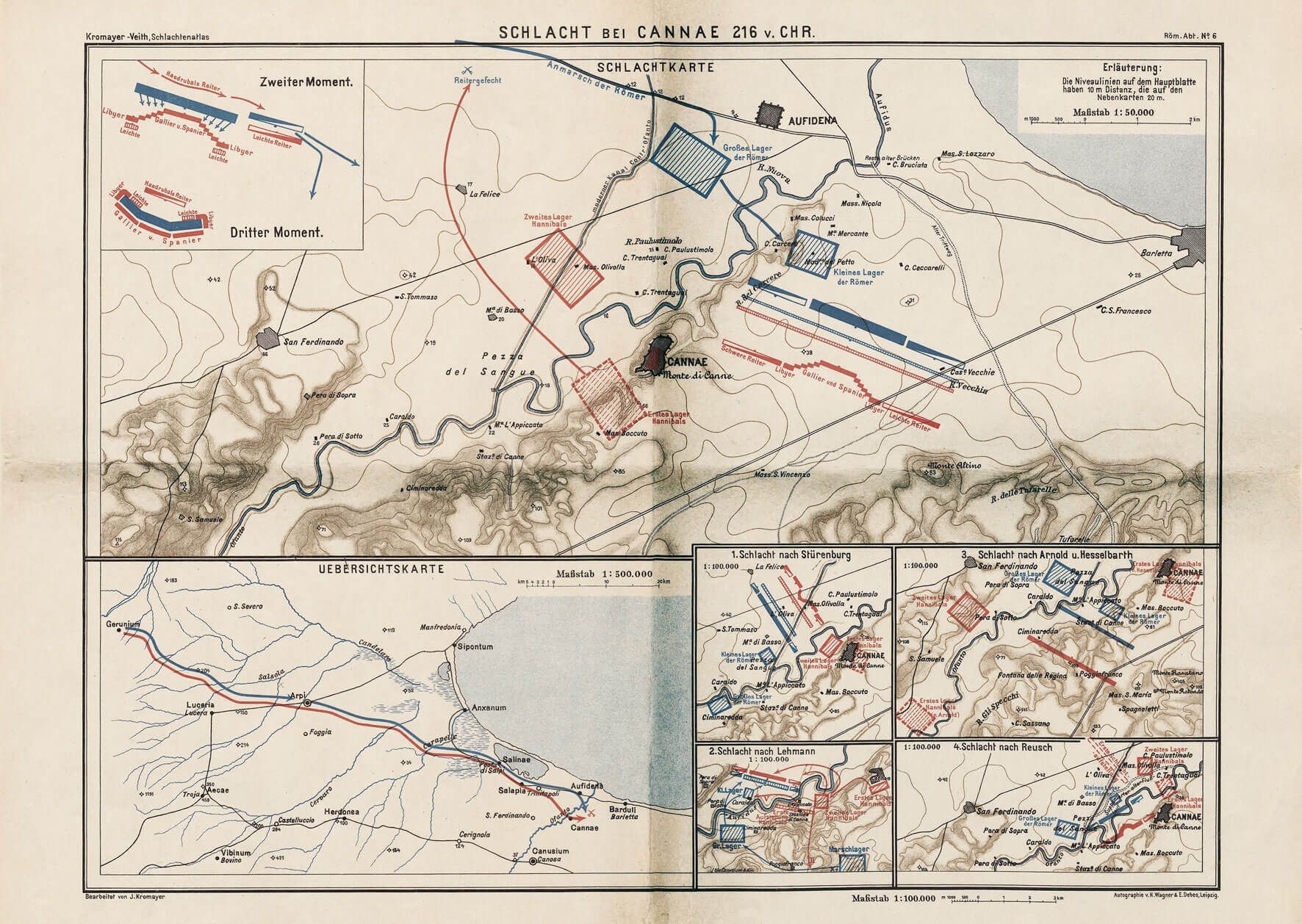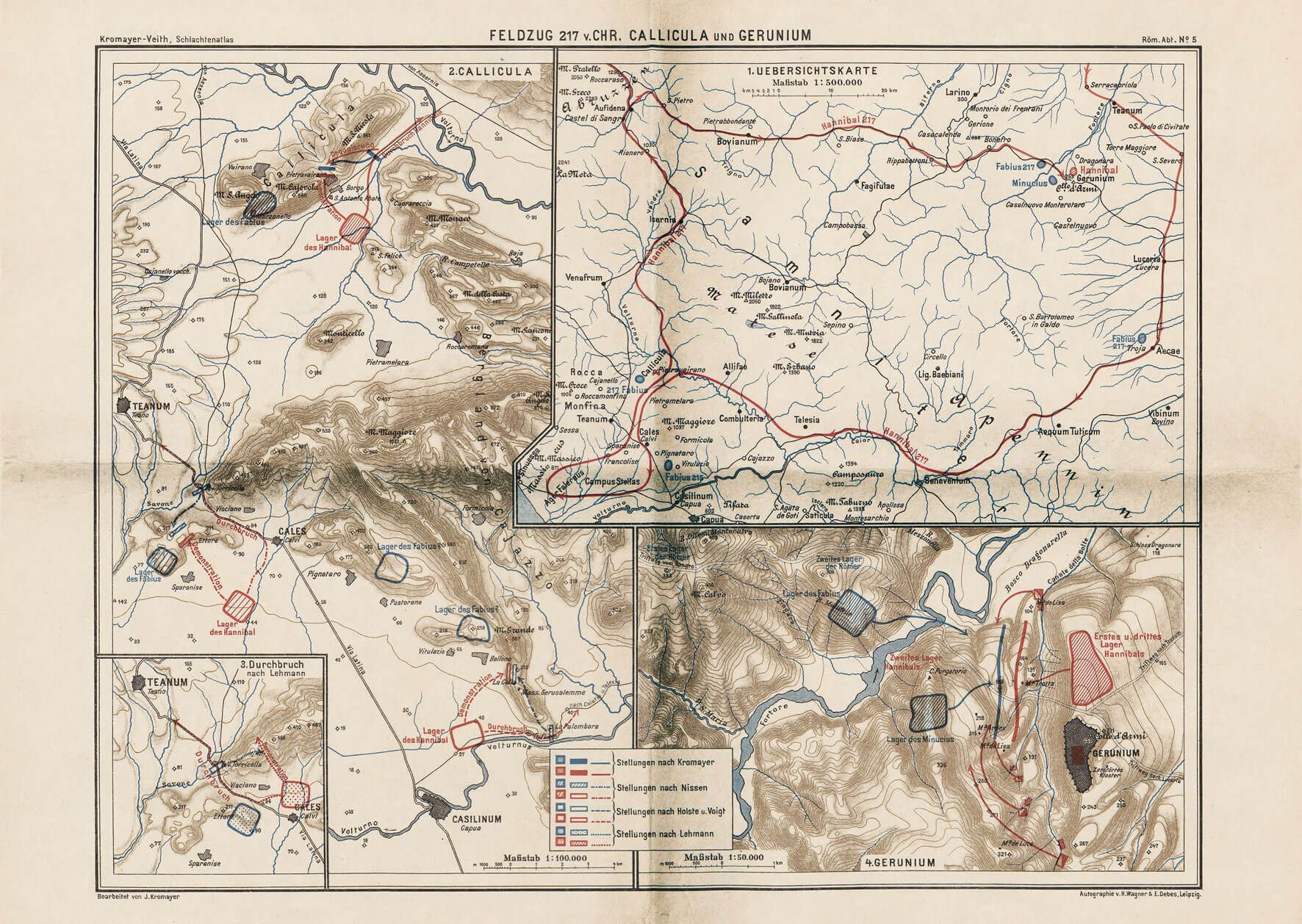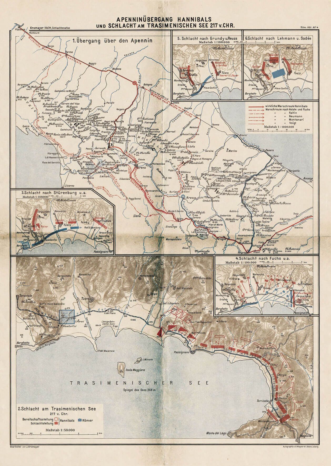 El Schlachten-Atlas zur antiken Kriegsgeschichte, el Atlas de batallas de la Antigüedad de Johannes Kromayer y Georg Veith, publicado en seis volúmenes entre 1922 y 1929, sigue siendo la obra magna sobre la cartografía de los campos de batalla del mundo antiguo. Kromayer, filólogo e historiador, y Veith, oficial de artillería del Ejército austro-húngaro, conjugaron un conocimiento minucioso de las obras clásicas con la experiencia militar y la exploración personal de las posibles ubicaciones de las más importantes batallas de la Antigüedad, hasta que Veith fue asesinado en 1925 por dos bandidos turcos mientras cartografiaba el campo de Zela, allí donde siglos antes César pronunciase su veni, vidi, vici.