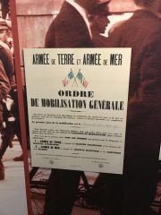 Uno de los ejemplos de este progresivo y positivo cambio es el Museo de la Gran Guerra de Meaux (Brie, Francia). El edificio del museo en cuestión se encuentra aproximadamente a un kilómetro de la urbe. Allí, una zona de campos verdes y banderas de numerosos países nos dan la bienvenida. Una vez dentro del museo y después de dejar nuestras pertenencias en una taquilla adornada con elementos de la Gran Guerra, pasamos a la sucesión de salas que forman la exposición. La primera parte del museo lo conforman una serie de pasillos en las que se nos cuenta la historia del militarismo previo al inicio del conflicto. Aquí se puede observar una buena cantidad de uniformes de las escuelas de cadetes. Asimismo, se pueden ver las declaraciones de movilización y sendos mensajes nacionalistas que eran leídos a los soldados.