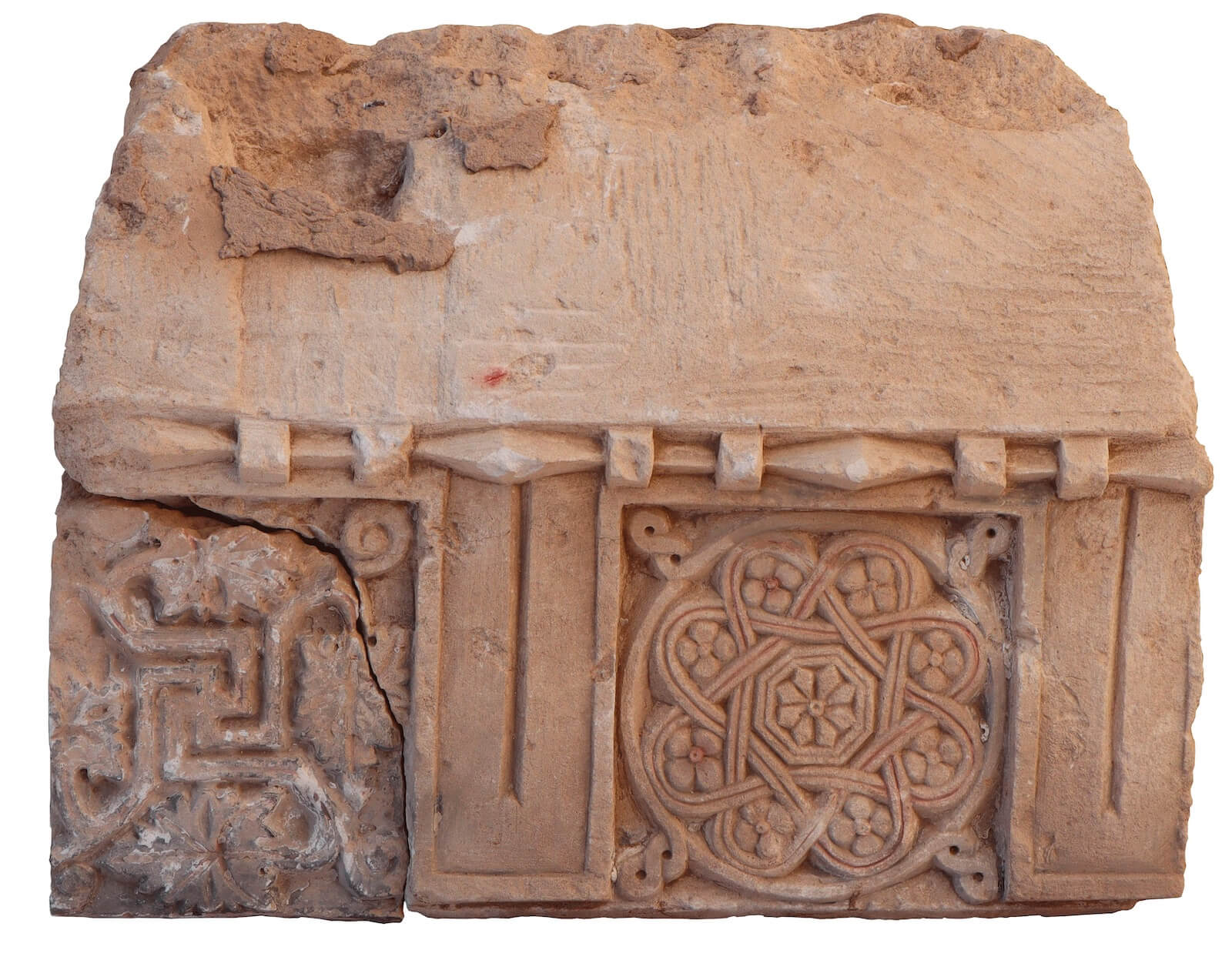 En esta campaña se ha intervenido en tres de los sectores. En el Sector 24 se ha continuado trabajando en el edificio basilical de época cristiana, descubierto hace unos años, para definir su tamaño real en el eje E-W. Entre el material arqueológico recuperado hay que destacar una gran cantidad de capiteles, fustes y basas de columnas, así como numerosos bloques de piedra con una rica decoración geométrica, vegetal y zoomorfa, pertenecientes a dicho edificio, una estela funeraria y un papiro, ambos con una inscripción en griego (fig.1).