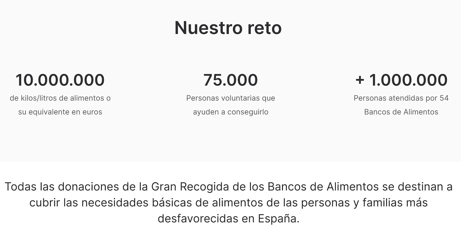 El 10% del importe de todas las compras realizadas en nuestra tienda online entre el jueves 27 y el domingo 30 de noviembre se destinará a apoyar la Gran Recogida de Alimentos 2025, que en años anteriores ha situado a España a la cabeza del mapa de la solidaridad en Europa, y que este año se marca un ambicioso reto.