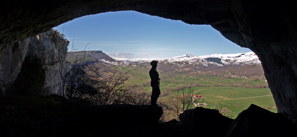 Portalón de la Cueva Kaite con vistas hacia el valle de Sotoscueva. Fotografía por Miguel Ángel Martín Merino