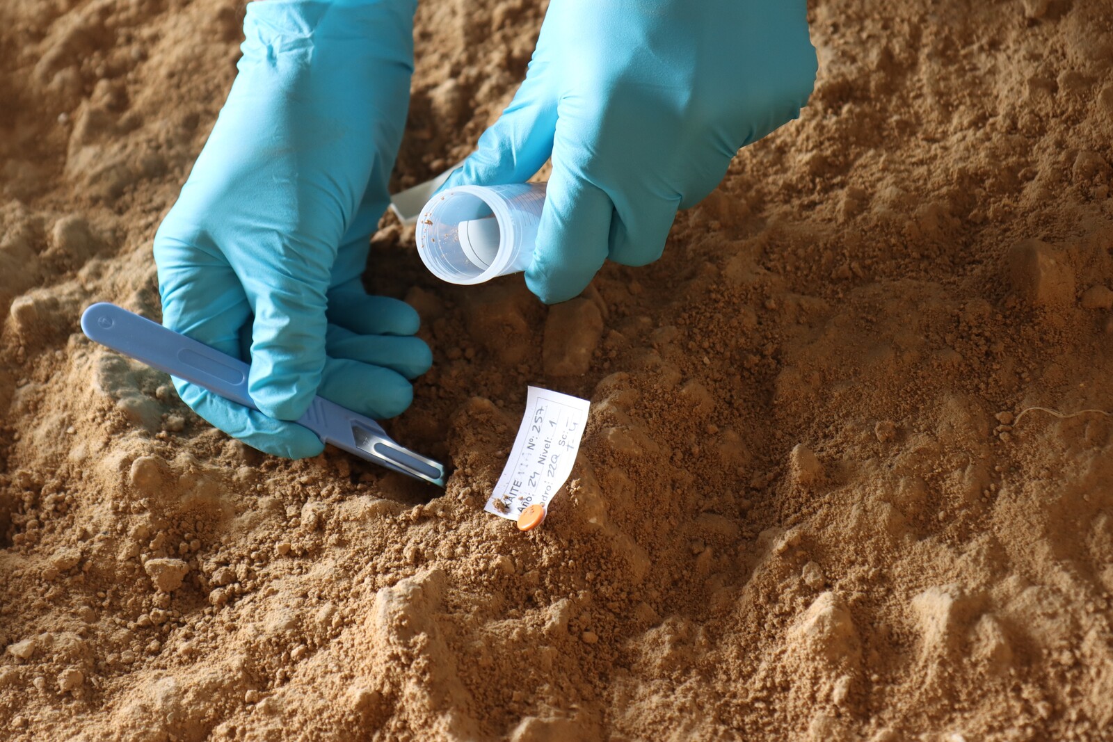 Recogida de muestras de sedimento para análisis posteriores de laboratorio. Fotografía por Lucía Agudo Pérez.