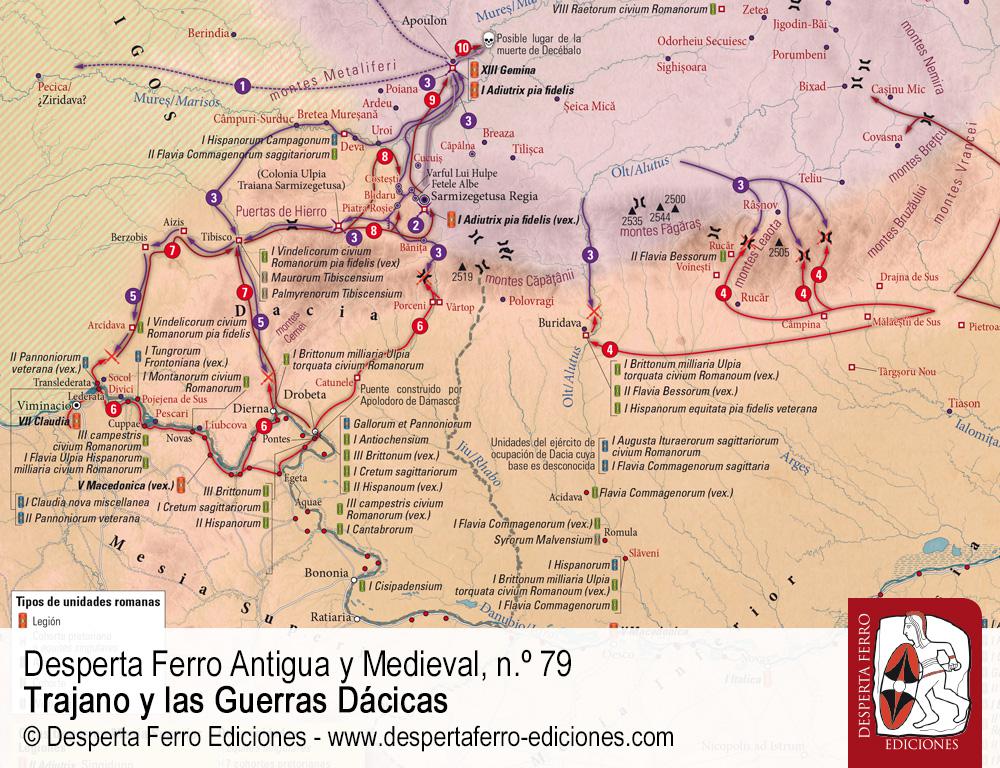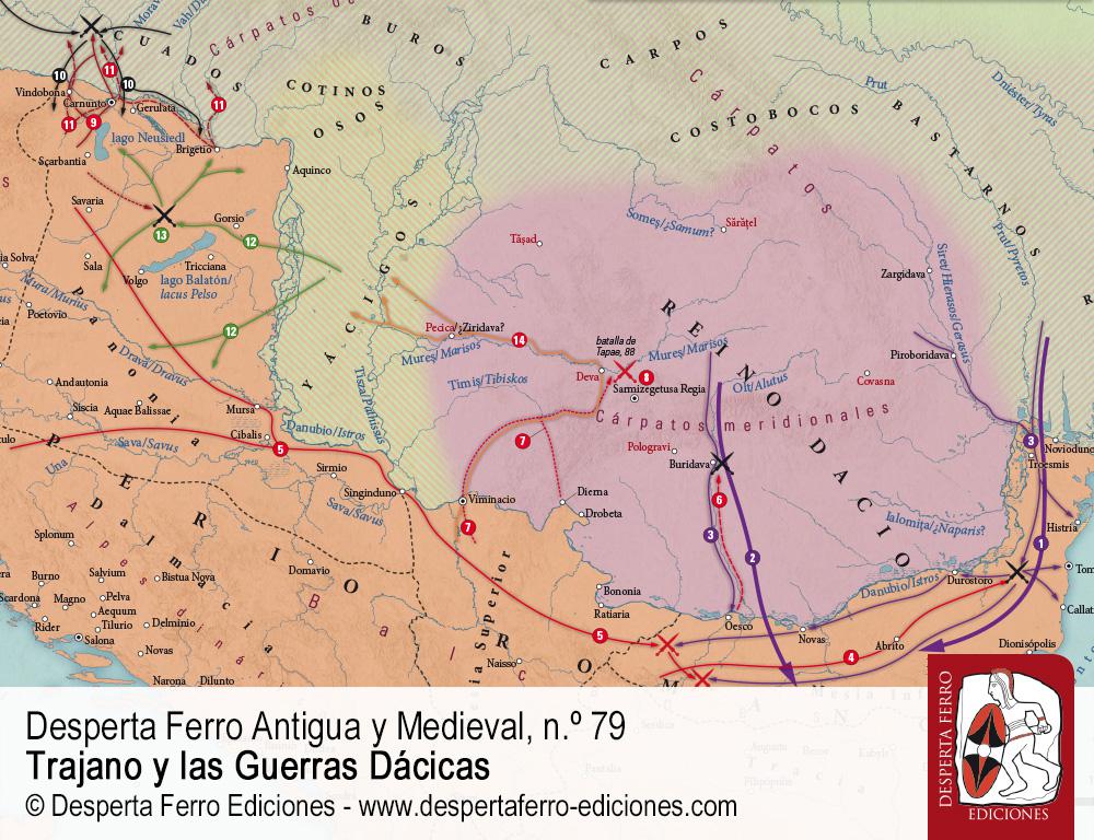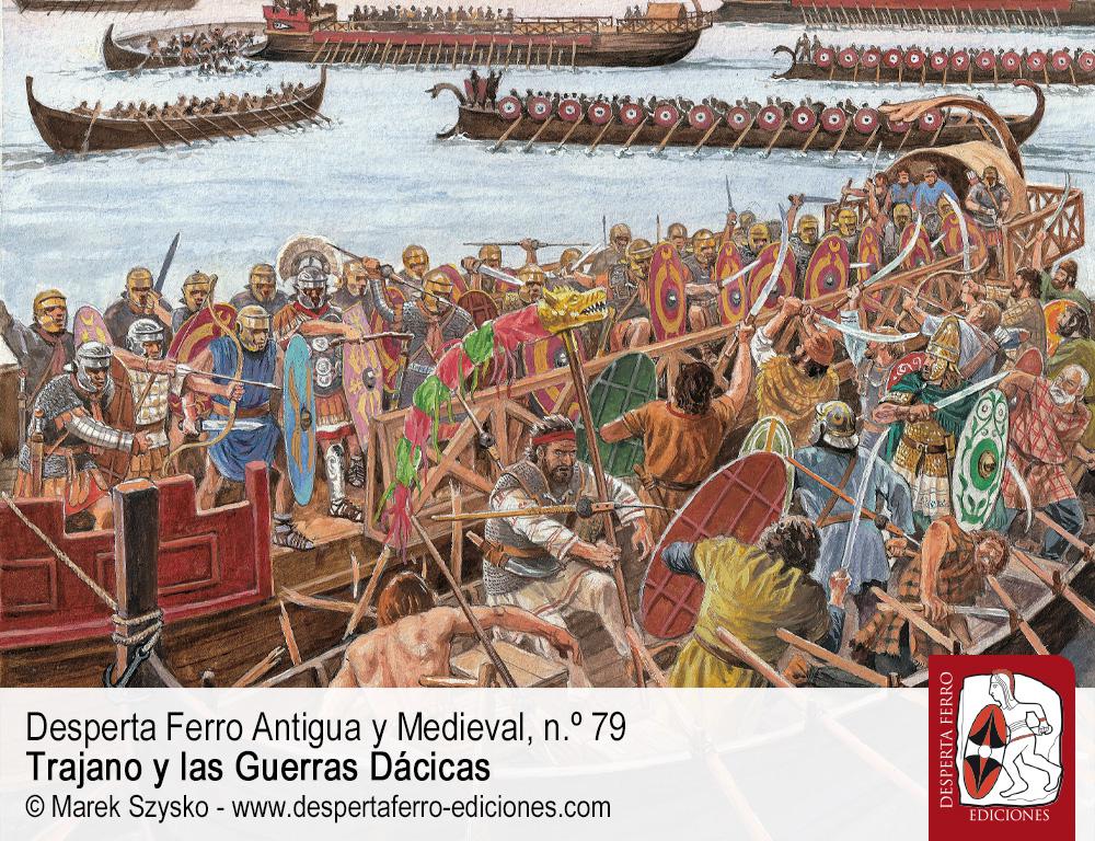 En la primavera del año 101 el emperador Trajano dio comienzo a la primera de sus guerras dácicas, destinada a neutralizar, de forma permanente, la amenaza que el Estado dacio y la entente conformada a su alrededor suponían para los intereses geopolíticos y estratégicos del Imperio romano e, incluso, para su mera presencia en la Europa danubiana y póntica. Durante los conflictos sostenidos en 69-70 y 85-89, el reino dacio y sus socios habían demostrado tener el potencial necesario para tratar de desplazar al poder romano de la región, así como para poner en marcha un verdadero proyecto expansionista al sur del Danubio. Aunque también contribuyó a debilitar seriamente a parte aliados de Dacia en el curso alto del Danubio, la principal aportación de las operaciones llevadas a cabo por Domiciano en la zona (85-93) fue evitar la pérdida de territorio romano, así como ganar tiempo de cara a un necesario cambio en la estrategia con la que se estaba afrontando el desafío. Cuando Marco Ulpio Trajano accedió a la púrpura en el año 98, la cuestión seguía evidentemente abierta. A ojos de los estadistas romanos resultaba evidente que la única solución permanente posible al “problema dacio” pasaba por la desarticulación violenta de la entente dácica y, sobre todo, por la conquista y destrucción del Estado dacio, reafirmando y consolidando la hegemonía romana sobre la región y sus inmediaciones en el proceso. Serían necesarios dos breves pero intensísimas contiendas en 101-102 y 105-106, jalonadas de sangrientos enfrentamientos campales, difíciles asedios, y hasta insospechadas batallas navales, para que Roma se alzara finalmente triunfante, en un dilatado duelo que cambiaría para siempre la faz de la Europa oriental. Trajano y las guerras dácicas.
