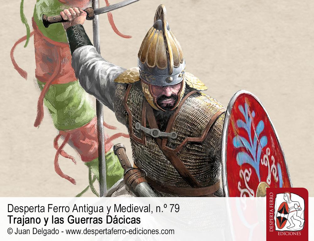 Las fuentes literarias, el registro arqueológico y la iconografía muestran cómo el Ejército romano transformó y adaptó su equipamiento y tácticas de combate a los numerosos desafíos bélicos que se le plantearon a lo largo de toda su historia. Las dos campañas de las Guerras Dácicas de Trajano, contra los dacios y sus aliados en los inicios del siglo II, constituyen un buen ejemplo de esa capacidad de adaptación por parte de la maquinaria de guerra romana. Entre las múltiples dificultades y desafíos a los que tuvo que hacer frente el Ejército romano en sus campañas contra los dacios figuraron el armamento y las técnicas de combate de este pueblo, que ya se habían revelado muy efectivas poco tiempo atrás. En este artículo abordaremos la forma en que Roma respondió, una vez más, a los distintos desafíos que se le presentaron a sus fuerzas armadas durante las citadas contiendas contra el Estado dacio.