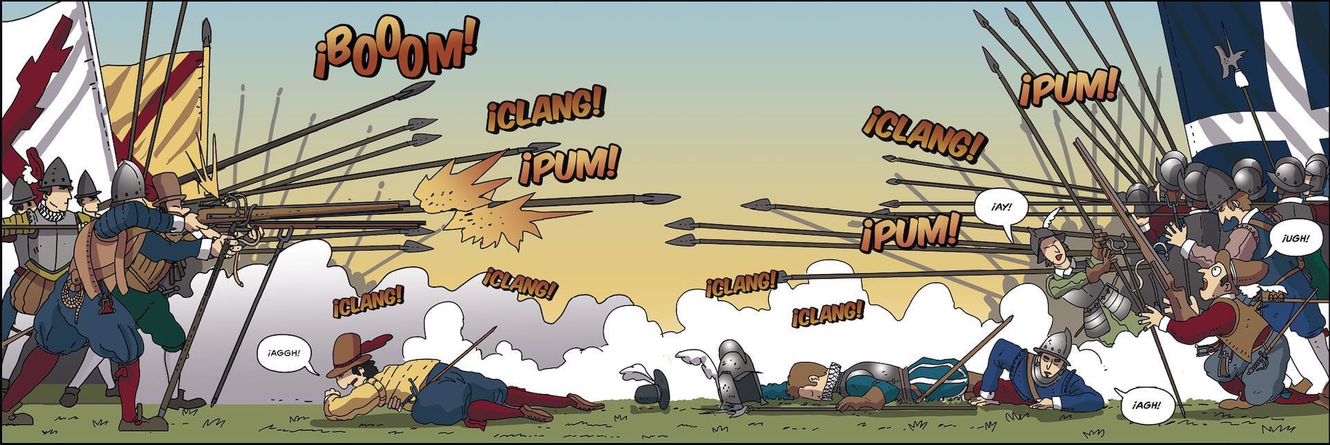 Si de algo nos preciamos en Desperta Ferro es de la fidelidad de nuestras ilustraciones a la realidad histórica, y eso es algo que hemos mantenido en la colección Historietas. Combinamos un trabajo de documentación exhaustivo con el entusiasmo por la historia y su representación de Juan de Aragón, El Fisgón Histórico. Para recrear el aspecto de los personajes y de los lugares por donde transcurren los lances de Alonso de Contreras, que mejor que volver a repasar las publicaciones que hemos dedicado a los Tercios y a sus batallas. Así, para la guerra naval en el Mediterráneo contra turcos y berberiscos nos hemos servido de Lepanto o del especial dedicado a los Tercios en el norte de África; para los recuerdos del veterano que combatió en Empel y en Doullens a los números dedicados a la Guerra de Flandes, a los especiales sobre los Tercios en los siglos XVI y XVII o al magnífico De Pavía a Rocroi de Julio Albi. Pero también el número de Arqueología e Historia que dedicamos a los pícaros en el Siglo de Oro, que nuestro personaje tiene un buen tanto de pícaro también, y que nos ayuda a entender al ambiente de taberna y naipes que tanto le gustaba.