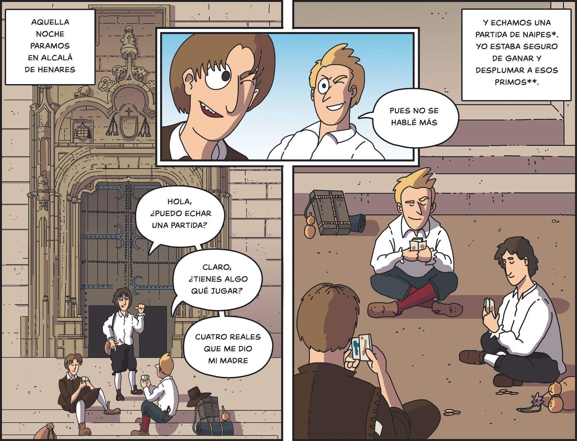 Si de algo nos preciamos en Desperta Ferro es de la fidelidad de nuestras ilustraciones a la realidad histórica, y eso es algo que hemos mantenido en la colección Historietas. Combinamos un trabajo de documentación exhaustivo con el entusiasmo por la historia y su representación de Juan de Aragón, El Fisgón Histórico. Para recrear el aspecto de los personajes y de los lugares por donde transcurren los lances de Alonso de Contreras, que mejor que volver a repasar las publicaciones que hemos dedicado a los Tercios y a sus batallas. Así, para la guerra naval en el Mediterráneo contra turcos y berberiscos nos hemos servido de Lepanto o del especial dedicado a los Tercios en el norte de África; para los recuerdos del veterano que combatió en Empel y en Doullens a los números dedicados a la Guerra de Flandes, a los especiales sobre los Tercios en los siglos XVI y XVII o al magnífico De Pavía a Rocroi de Julio Albi. Pero también el número de Arqueología e Historia que dedicamos a los pícaros en el Siglo de Oro, que nuestro personaje tiene un buen tanto de pícaro también, y que nos ayuda a entender al ambiente de taberna y naipes que tanto le gustaba.