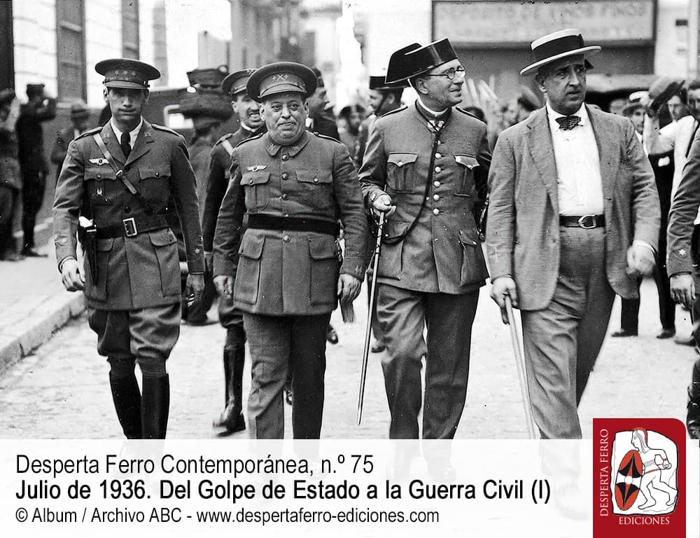 El 17 de julio de 1936, a las 17.00 horas, se inició en el protectorado español en Marruecos el golpe de Estado que, en las jornadas posteriores, iba a extenderse a toda la Península. La intervención de los militares en política no era un fenómeno nuevo en el primer tercio del siglo XX aunque en esta ocasión iba a ser algo más que la simple asonada de un general de alto rango. Organizados desde hacía meses por la mano de hierro del general Mola, “el Director”, y bajo el mando del general Sanjurjo, los golpistas, en su mayoría militares y algunos de ellos antiguos defensores del propio sistema republicano, con la ayuda de diferentes fuerzas políticas de extrema derecha como los monárquicos alfonsinos, la Comunión Tradicionalista o la Falange, triunfaron en el norte bajo el mando de Mola y en Andalucía bajo el de Queipo de Llano, pero Goded fracasó en Barcelona. El país se deslizaba hacia la guerra civil.