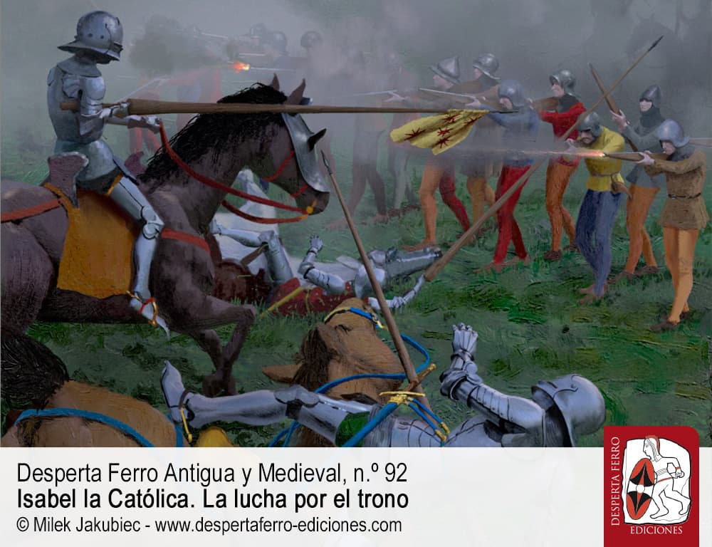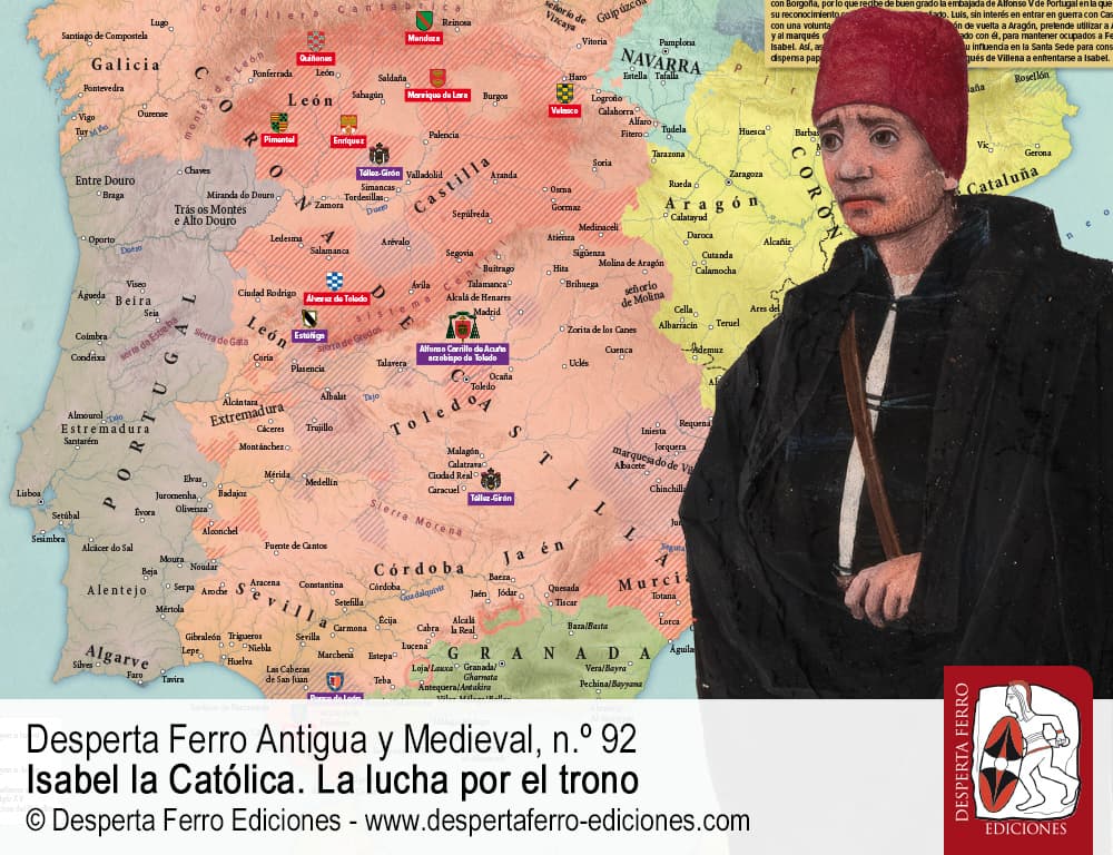 Los últimos años del reinado de Enrique IV de Castilla fueron una verdadera pesadilla política, sumidos en una pugna abierta con la propia nobleza del reino. Esta se sentía agraviada por lo que juzgaba un injusto reparto del poder y, en concreto, por el rápido ascenso y gran influencia del valido del rey, don Beltrán de la Cueva, en perjuicio de los linajes principales. La muerte del rey, en diciembre de 1474, solo sirvió para agravar la situación. A la lucha entre la nobleza y el rey se sumó un conflicto sucesorio. Enrique dejaba en el mundo a una hija, Juana, a quien sus enemigos bautizaron peyorativamente como “la Beltraneja” porque, según el rumor, no era hija del rey sino de su valido, el mencionado Beltrán de la Cueva. En torno a Juana se formó un partido de nobles entre los que destacaba su prometido –y después esposo–, el rey Alfonso de Portugal. Frente a ellos, otro grupo de cortesanos se reunió en torno a Isabel de Castilla, la futura Isabel la Católica, cuya candidatura se fundamentaba en su parentesco –como medio hermana– con el finado Enrique. Por entonces Isabel estaba casada con Fernando de Aragón, hijo y futuro heredero del rey de Aragón, lo que suscitó que el rey de Francia interviniera también en el conflicto, pues deseaba evitar que Aragón, su rival, se uniera a Castilla. Así se conformaron dos bandos, el juanista y el isabelino, que se lanzaron a una guerra abierta, por tierra y mar, que duró nada menos que cuatro años. Al término, dos nuevos reyes, Isabel y Fernando, se sentaban en el trono, con los reinos de Castilla y Aragón unidos dinásticamente en lo que sería la primera piedra de la moderna formación territorial de España.