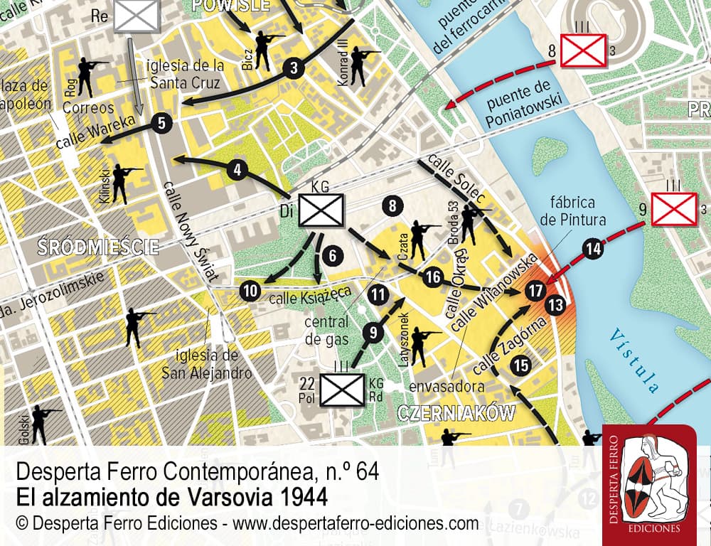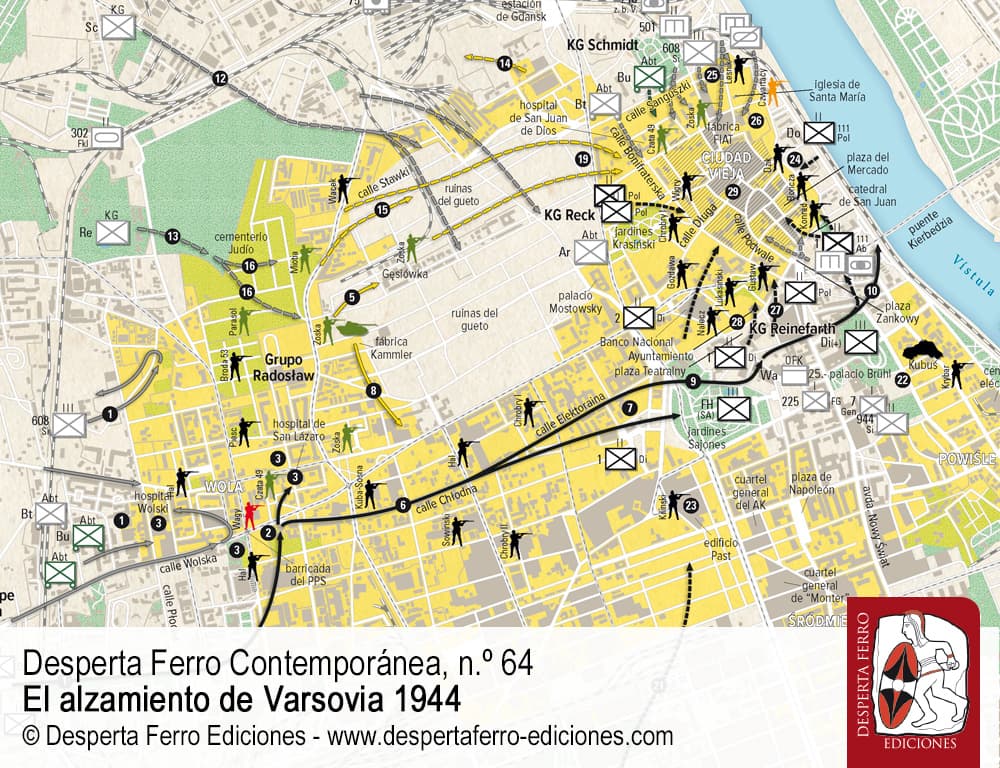 A finales de julio de 1944 Polonia llevaba casi cinco años sufriendo la brutal y despiadada ocupación alemana, a la vez que el Armia Krajowa, su Ejército secreto, combatía a los invasores y se preparaba para liberar el país empezando por el alzamiento de Varsovia. En aquel momento la Wehrmacht estaba casi derrotada, pero las nubes que se cernían sobre ella se alzaban también sobre las esperanzas de los polacos, ya que el Ejército Rojo, que avanzaba imparable desde Bielorrusia con destino Varsovia, había sido uno de los invasores de septiembre de 1939, sumiendo a la mitad oriental del país bajo el régimen de Stalin, tan brutal como el de los nazis en la mitad occidental. En 1941 los avatares de la guerra convirtieron a los soviéticos en aliados, pero las relaciones entre estos y el Gobierno polaco en el exilio nunca fueron buenas. Así, cuando el Ejército Rojo empezó su cabalgada hacia Varsovia, los polacos decidieron liberarse a sí mismos, o al menos su capital, para ganarse el derecho a conservar su independencia. La orden del general Tadeusz Bór-Komorowski, emitida durante la tarde del 31 de julio, fijó la Hora W (por Wurza, tormenta) a las 17.00 del 1 de agosto de 1944. Y Varsovia se alzó. La batalla, que apenas tendría que haber durado unas jornadas, se alargó hasta el 2 de octubre. Durante aquellos sesenta y tres días los polacos se defendieron con uñas y dientes contra un enemigo muy superior, con la esperanza de que el Ejército Rojo llegara para socorrerlos, pero este nunca llegó a implicarse a fondo en los combates. Los luchadores del Armia Krajowa tuvieron que enfrentarse a los blindados y a la potencia de fuego de los alemanes con un puñado de armas de diversas procedencias, pero lo peor fue la crueldad manifestada por los ocupantes. La población fue masacrada y los edificios destruidos. Ni tan siquiera la rendición final alivió a la desafortunada ciudad que, como una nueva Cartago, fue arrasada casi por completo tras la batalla.