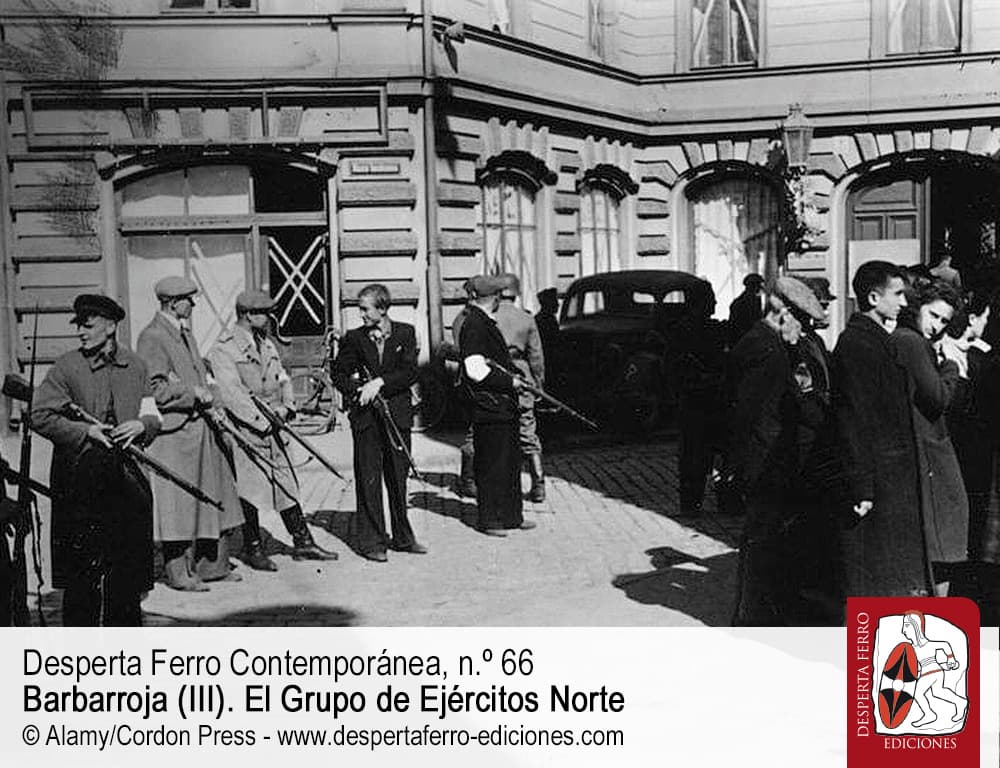 El 22 de junio de 1941 Lituania, y después, muy rápidamente, Letonia y Estonia, se convirtieron en campo de batalla. Una clave importante para entender el periodo de ocupación germana de estos países es que nunca hubo estado de guerra entre Alemania y ellos, porque, basándose en el principio de la debellatio, Berlín consideró que no existían, pues habían sido liquidados de facto por la invasión y anexión soviética; aunque, en contraposición a las atrocidades recién cometidas por los soviéticos, una parte importante de la población vio a los soldados alemanes como libertadores. La extrema rapidez inicial del avance de la Wehrmacht desencadenó, por toda la retaguardia soviética, la lucha armada de las fuerzas nacionalistas contra el régimen de ocupación comunista. En la misma intervinieron parcialmente los refugiados huidos de la ocupación soviética, entre los cuales Berlín empezó a buscar candidatos que pudieran colaborar con la administración local de los territorios lituanos, letones y estonios, a la vez que estos soñaban con recuperar algún tipo de independencia gracias al apoyo de Alemania.
