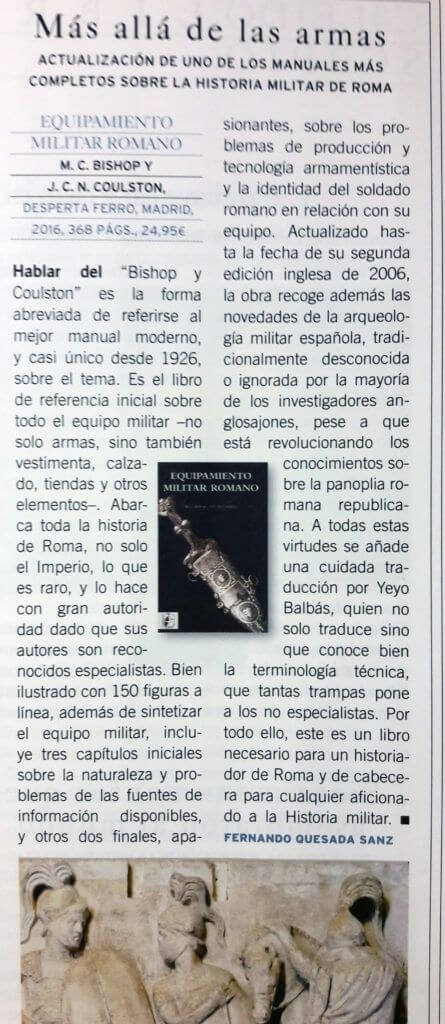 «Las fuerzas romanas, sobre todo las legionarias, despiertan la curiosidad de aficionados y son una fuente de información para los historiadores actuales. […] se ha convertido en un referente para todos los que quieren comenzar a investigar sobre este campo y ahora, gracias a la editorial Desperta Ferro, disponemos de esta obra en castellano».