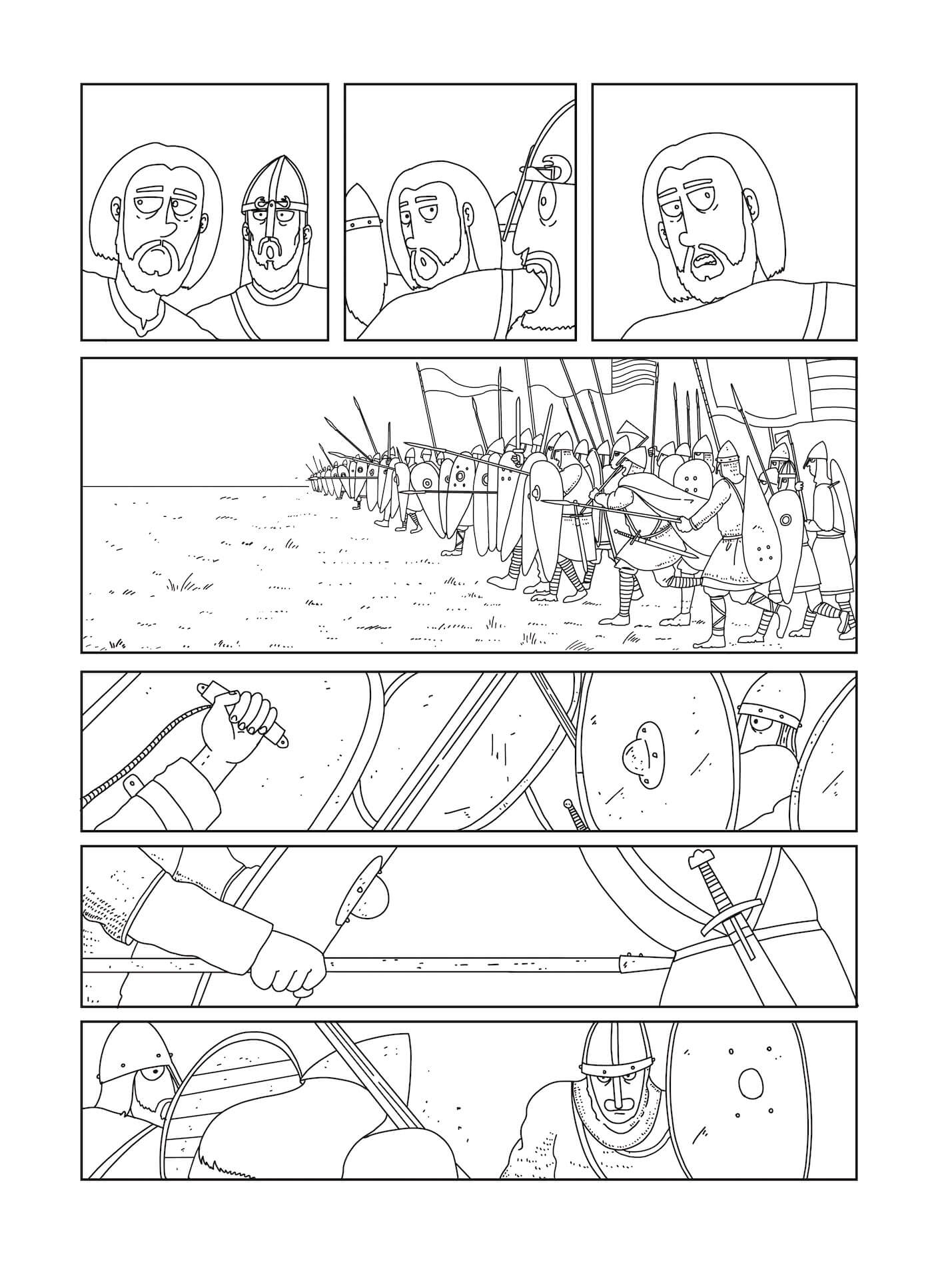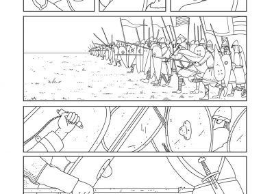La vida de Harald está tan llena de aventuras y sucesos extraordinarios que la ficción parece mezclarse con la realidad, pero podemos estar relativamente seguros de que gran parte de lo que contamos en nuestro cómic Harald, el último vikingo responde a hechos reales, aunque quizá algo adornados por nuestras fuentes. Hemos recurrido por tanto a las principales fuentes escritas con que contamos, siempre teniendo en cuenta los problemas que estas plantean, como determinadas incoherencias cronológicas o exageraciones. El texto más completo está en la Heimskringla («Orbe del mundo»), escrito por Snorri Sturluson en Islandia ya a mediados del siglo XIII, y que recoge las sagas de los reyes noruegos. Sturluson recopiló textos de autores más antiguos y también poemas de los escaldos, aunque tiene problemas como asignar a Harald anécdotas que también se adscriben a otros líderes vikingos. La Heimskringla es un texto lleno de poesía, tanto que no nos hemos resistido a incluir algunos de sus fragmentos como bocadillos en Harald, el último vikingo, como los poemas que el propio Harald compuso y cantó. Otras fuentes son la Crónica Anglo-Sajona, que nos cuenta solo la invasión de Inglaterra por Harald en 1066; una crónica escrita en Constantinopla a finales del siglo XI y que narra sus aventuras en la Guardia Varega; y la Historia de Adán de Bremen, terminada en 1075. Además de las fuentes, hemos recurrido a las obras de investigación histórica que existen sobre el periodo, y que ayudan a que tengamos una visión más completa de la vida y el tiempo de Harald Hardrada.