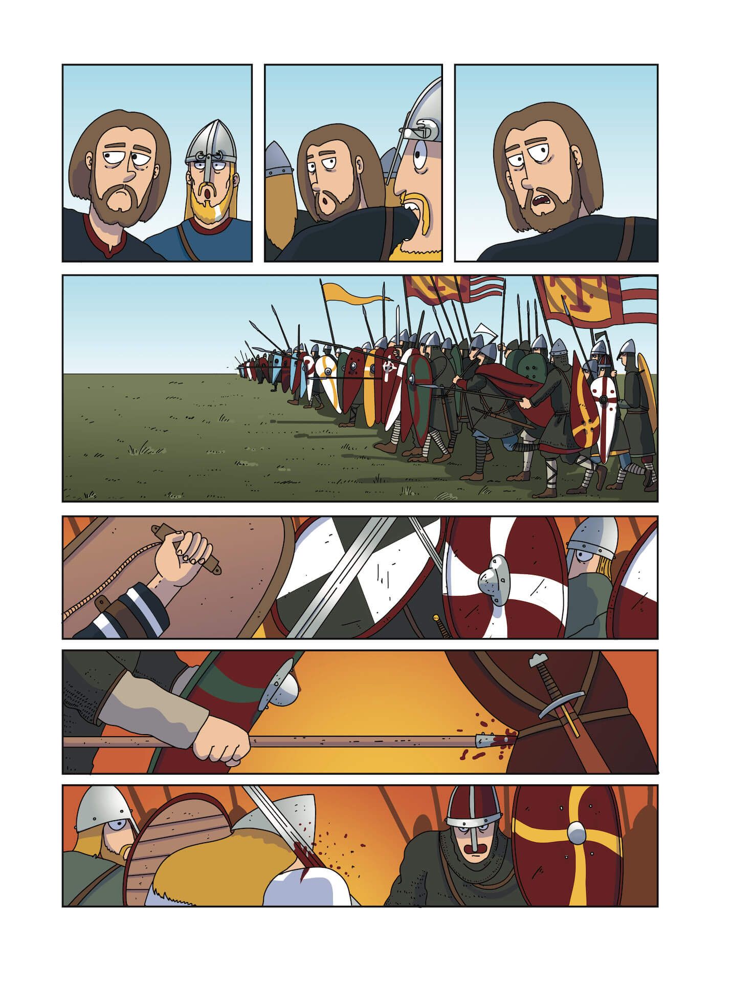 «Olvidaos de los cuernos de los cascos de Vickie el Vikingo y sus amigos y de otros muchos mitos sobre los vikingos, porque el cómic Harald. El último vikingo nos cuenta la auténtica historia del rey Harald III de Noruega, uno de los guerreros más famosos de la época, apodado el despiadado».
