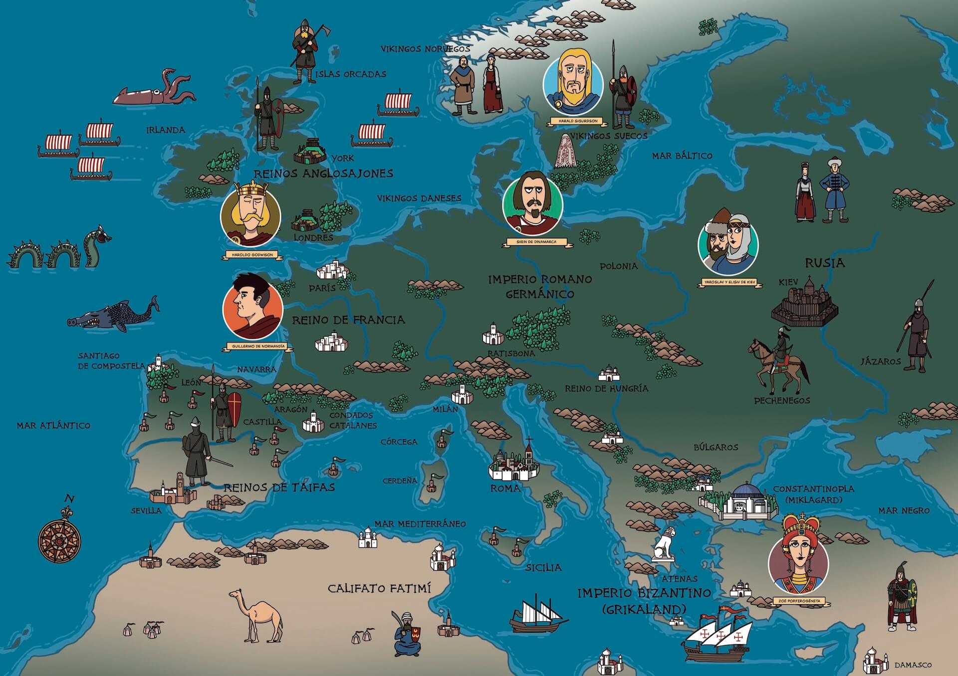 El mundo de Harald era ya uno en cambio, en el que los monarcas escandinavos afianzaban su poder y en el que el cristianismo iba desplazando a los viejos dioses, pero en el que todavía había hueco para que los aventureros del norte intentasen ganar fama y fortuna a punta de espada, fuese como mercenarios en Bizancio o tratando de conquistar su propio reino. Para que lo sitúes temporalmente, en la península ibérica es la época de los almorávides y de El Cid –apenas un poco mayor que Harald–, y faltan solo unas décadas para que comiencen las Cruzadas.