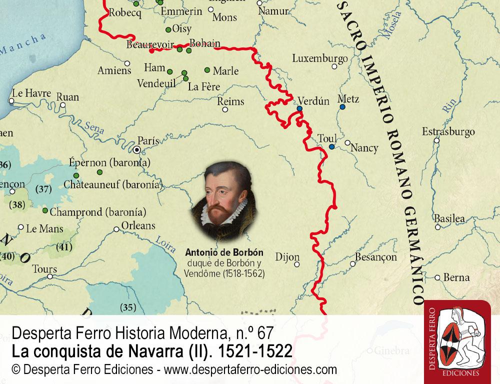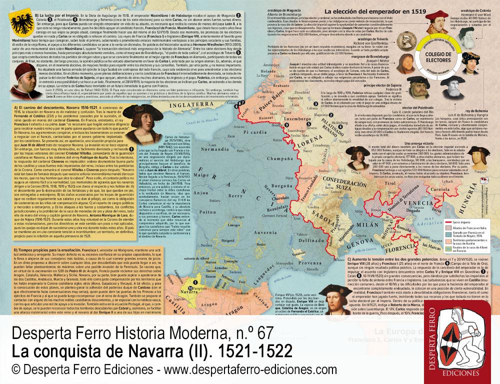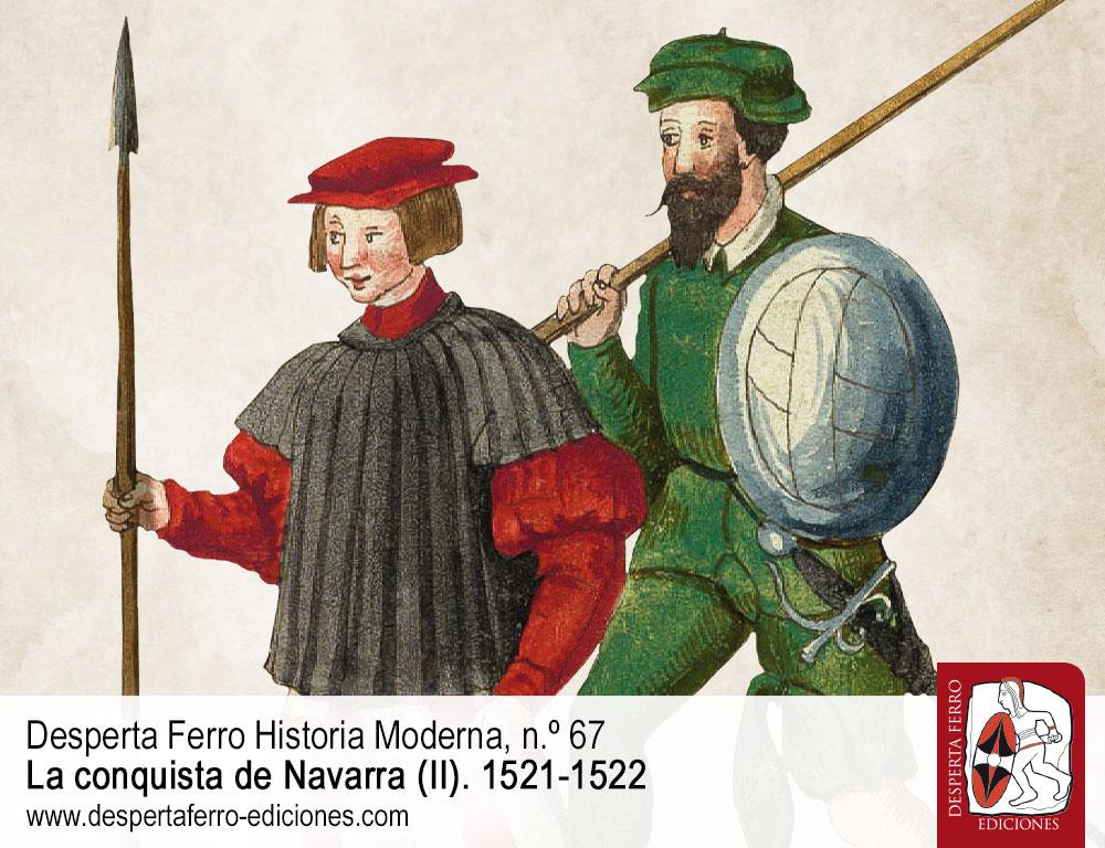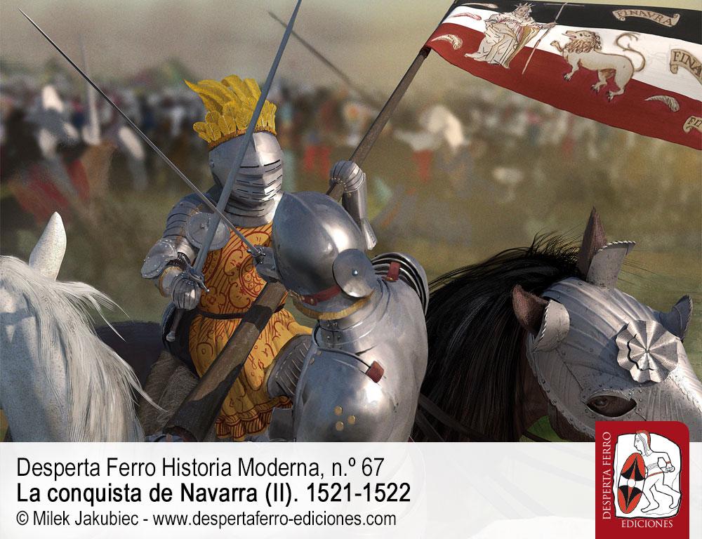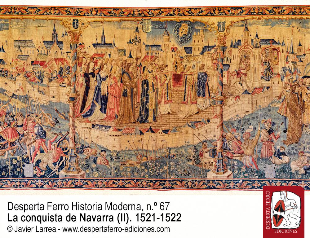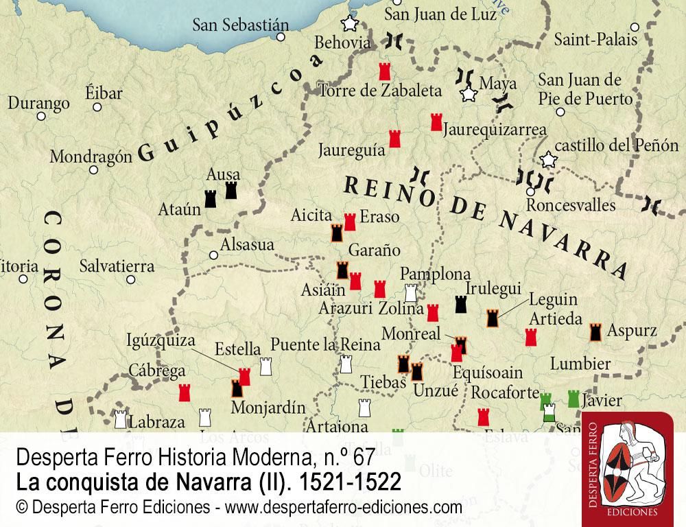 El 30 de junio de 1521 se decidió en el llano entre los pueblos de Noáin y Esquiroz, cerca de Pamplona, la conquista de Navarra. Invadido nueve años antes por los ejércitos castellano y aragonés de Fernando el Católico, el reino pirenaico había sido anexionado a la Corona de Castilla en 1515, pero sus antiguos monarcas de las casas de Foix y Albret, refugiados en sus territorios al norte de los Pirineos, no se resignaron a su pérdida e intentaron recuperarlo en varias ocasiones. La última y más importante de ellas se produjo en 1521, cuando tropas al servicio de Enrique II de Albret, apoyadas por un numeroso contingente francés enviado por Francisco I de Francia, deseoso de hostigar a su rival, el emperador y rey de Castilla Carlos V en todos los frentes posibles –desde Guipúzcoa y Navarra hasta los Países Bajos, pasando por Italia–, avanzaron victoriosas por Roncesvalles, tomaron Pamplona casi sin oposición e incluso entraron en Castilla para asediar Logroño. La respuesta imperial no se hizo esperar. En Noáin, las aspiraciones de Enrique II se vieron frustradas, si bien la guerra prosiguió durante varios años, con episodios de gran importancia como los asedios de Maya (1522) y Fuenterrabía (1522-1524). La contienda supuso para los antiguos monarcas navarros la pérdida definitiva de sus territorios al sur de los Pirineos –no así de la Baja Navarra, Bearne y otros feudos dentro del reino de Francia–, al tiempo que abrió procesos de evolución divergentes para unos y otros. De dichos procesos, así como de las campañas militares, las negociaciones políticas, los ejércitos del periodo y la evolución de las fortificaciones se habla en este segundo y último número que dedicamos a la conquista de Navarra.