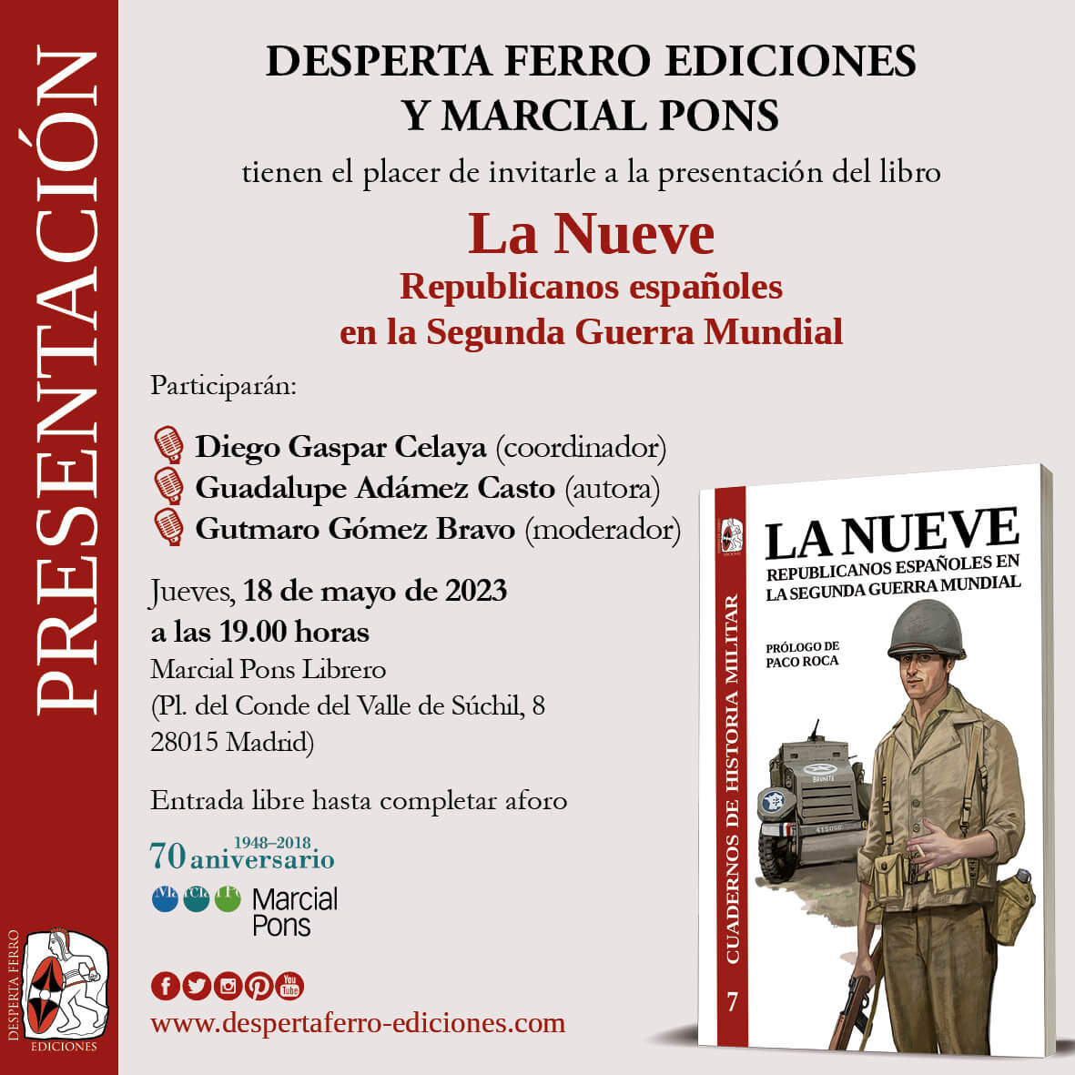 La capitulación de Francia ante el Tercer Reich el 24 de junio de 1940 dejó en el más absoluto desamparo a los españoles refugiados en este país tras la Guerra Civil. Obligados por Vichy a continuar movilizados en la Legión Extranjera e integrar los Grupos de Trabajadores Extranjeros, muchos regresaron sin garantías a una España franquista donde les esperaba, en muchas ocasiones, la cárcel o el pelotón de fusilamiento. Otros, presentes o huidos al norte del África francesa, integraron los Cuerpos Francos de África, primero, y los ejércitos de la Francia Libre, más tarde. Jóvenes, pero con amplia experiencia militar, tras derrotar al Afrika Korps en Túnez, un puñado de ellos se convirtió en el núcleo inicial de la Nueve: la 9.ª compañía de combate del 3.er Batallón del Regimiento de Marcha del Chad; unidad que formaba parte de la 2.ª División Blindada del general Leclerc. Formados y entrenados en África e Inglaterra, tras desembarcar en Normandía a principios de agosto de 1944, los miembros de la Nueve iniciaron entonces un itinerario de combate de casi dos años en Europa, que les llevó a ser parte protagonista de la liberación de París el 24 de agosto de 1944 primero, la reconquista de Estrasburgo más tarde y de la ocupación de Alemania en la parte final del segundo conflicto mundial. No en vano, en mayo de 1945, los hombres de la Nueve, una compañía que tras dos años de lucha prácticamente ininterrumpida había perdido buena parte de su acento español, concluyeron en Baviera una guerra que, para muchos había empezado en España 1936. El 7 de mayo de ese mismo año, a los pies del refugio de Hitler en Berchtesgaden, los integrantes de la Nueve fueron informados de la capitulación alemana. La Segunda Guerra Mundial tocaba a su fin. Nacía un mito, el de la Nueve.