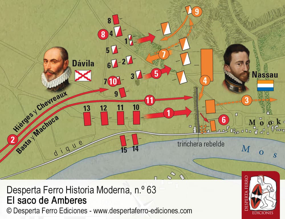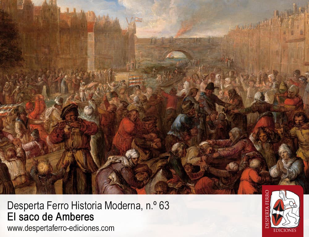El 4 de noviembre de 1576, se produjo el saco de Amberes por tropas españolas. La historiografía tradicional ha presentado este hito, que marcó el inicio de una nueva fase de la Guerra de Flandes como el ataque de una tropa de amotinados rebeldes contra una ciudad indefensa. La realidad fue muy distinta. En un contexto de caos político derivado del fallecimiento del gobernador general Luis de Requesens, los flamencos leales hasta entonces a la Corona se aliaron con los rebeldes de Guillermo de Orange para hacer frente al que consideraban el verdadero y principal enemigo de los Países Bajos: amotinados españoles que, cansados de combatir en trincheras inundadas y diques estrechos sin cobrar desde hacía meses, vagaban saqueando por la campiña. Los Estados Generales, reunidos en Bruselas sin la autorización de Felipe II, acabaron declarando la guerra poco después a todas las tropas españolas, incluidas las que seguían en sus puestos. Don Juan de Austria, designado nuevo gobernador, llegó tarde para impedir el desastre. A lo largo de las siguientes páginas recorremos el camino que culminó con el saco de Amberes, jalonado por asedios como el de Leiden, cuya liberación consiguieron los rebeldes a costa de inundar todo el sur de Holanda; la batalla de Mookerheide, en la que las tropas españolas de Sancho Dávila aplastaron el ejército orangista de los hermanos de Orange, y las fallidas negociaciones de paz de Breda; dos años en los que destaca Luis de Requesens por su papel al frente de la gobernación de Flandes como sustituto del duque de Alba, de quien hablamos en el número 50 de nuestra revista.