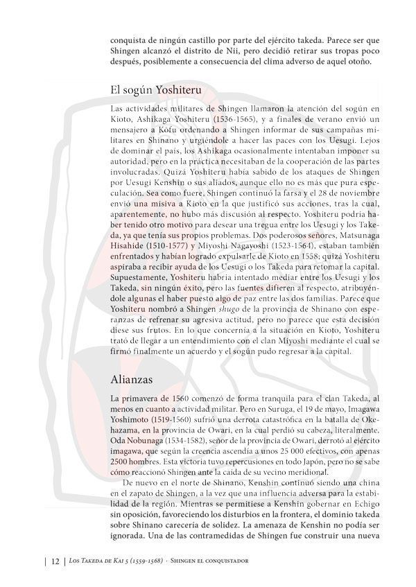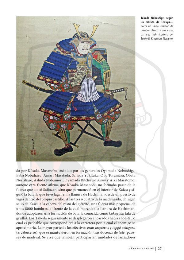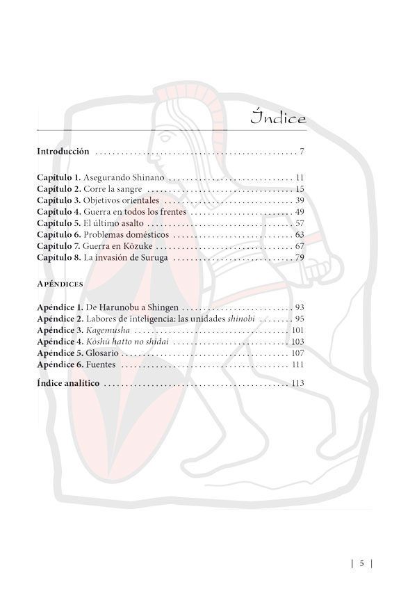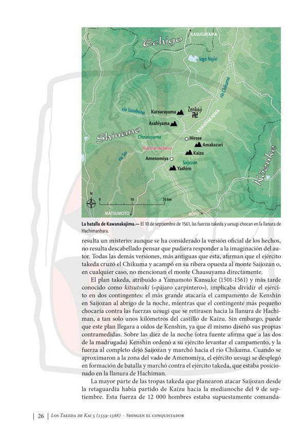 Con 6 espectaculares láminas a todo color a cargo Dag R. Frognes, historiador y profesor noruego conocido por su faceta de ilustrador especializado en temas históricos, mapas con los que Desperta Ferro Ediciones ha enriquecido la edición original, preciosas ilustraciones entintadas en blanco y negro y fotografías de la colección del autor, entre las que destacan las representaciones de la batalla de Kawanakajima (cortesía del Wakayama kenritsu rakishi hakubutsukan), Shingen el conquistador continúa la emocionante historia de uno de los clanes samuráis más famosos de Japón.