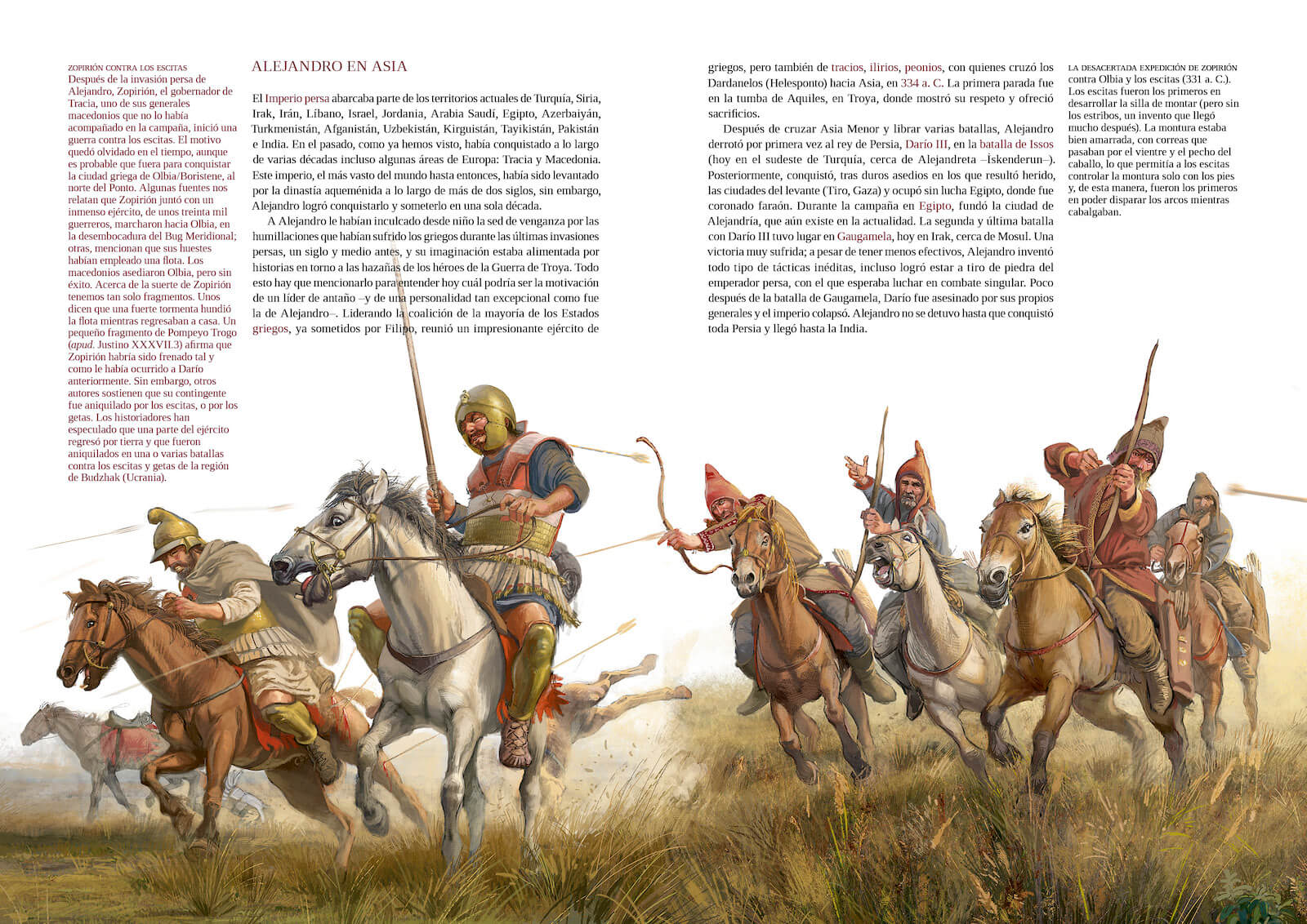 Después de Dacia. La conquista romana, llega el segundo libro de Radu Oltean, el ilustrador de las obras de arte que ornan las cubiertas de Desperta Ferro Antigua y Medieval. Con Tracios, getas y dacios, Radu nos sumerge en el rico mundo de la Antigüedad en el este de Europa, desde los primeros contactos de los tracios con los griegos y las incursiones persas o los conflictos con la Macedonia de Filipo y Alejandro Magno, hasta los choques de la pujante Dacia de Burebista con Roma. Radu aúna un conocimiento profundo de la realidad arqueológica de la región, apoyado en la asesoría de expertos, con su maestría para el dibujo, consiguiendo así traer a la vida fielmente una época fascinante, en atmosféricas escenas donde se cuida cada detalle. En estas páginas escuchamos el retumbar de los cascos de los caballos de los tatuados escitas, asistimos a los fastuosos funerales de un rey tracio, al sangriento choque entre legiones y falanges macedonias, o contemplamos en imágenes escenas hasta ahora solo contadas por Heródoto, el padre de la historia.